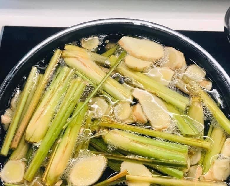 - Trong quá trình nước sôi, mở nắp nồi để mùi hương tỏi và sả bay ra khắp căn phòng.