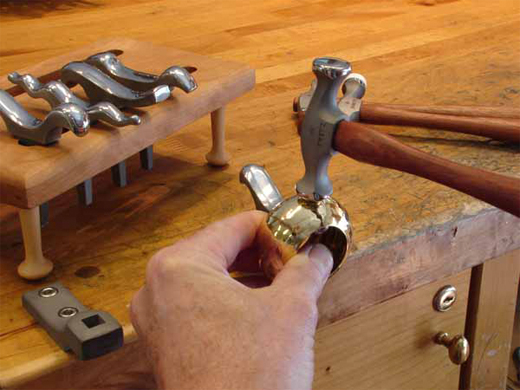 Vì vàng rất mềm nên khi tác động ngoại lực rất dễ bị móp méo. Ông bà ngày xưa hay đưa lên miệng cắn để phân biệt vàng là vì vậy. Nếu sản phẩm của bạn cứng không để lại dấu vết khi đã tác động ngoại lực thì chúng là vàng giả. Thường cách này chỉ áp dụng với vàng ta, vàng nguyên chất 9999, vàng tây và vàng trắng đã pha các tạp chất để làm cứng, chế tác cho dễ nên sử dụng cách này không có hiệu quả.