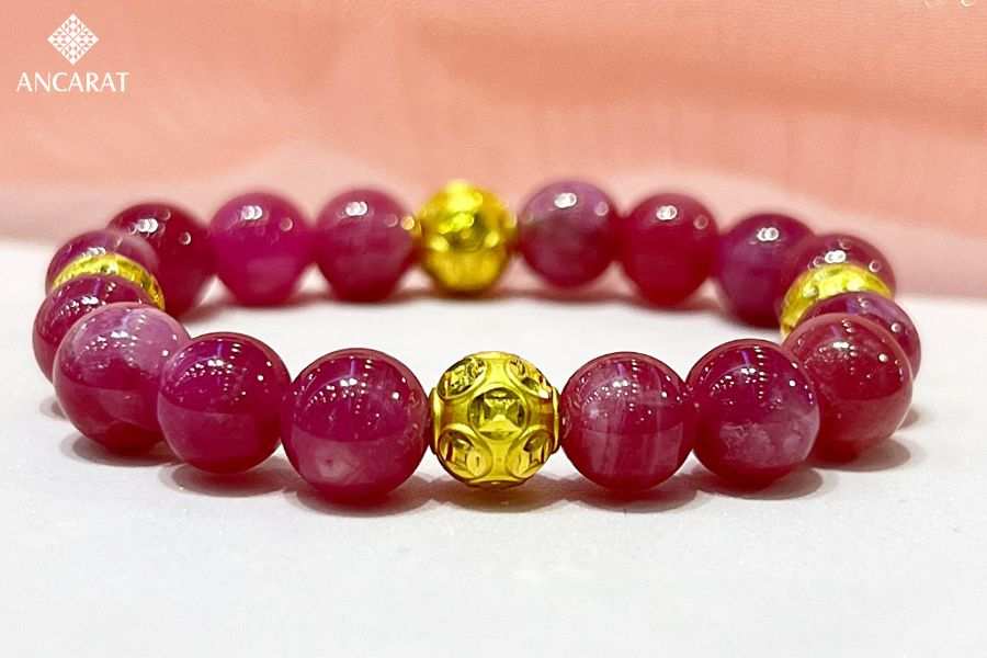 Đá ruby, hay còn được gọi là đá ngọc đỏ hoặc đá hồng ngọc, thường được chọn làm vật phẩm phong thủy. Với màu sắc chủ đạo là đỏ, người ta tin rằng loại đá này mang lại may mắn và tài lộc.