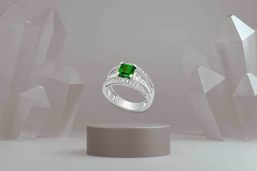Đá Emerald, hay còn gọi là ngọc lục bảo, nổi tiếng với màu xanh lục đặc trưng, là một loại đá cực kỳ phổ biến. Màu sắc của Emerald tượng trưng cho sự sinh sôi và phát triển, biểu tượng của sự sống, tình yêu, và sự tái sinh.